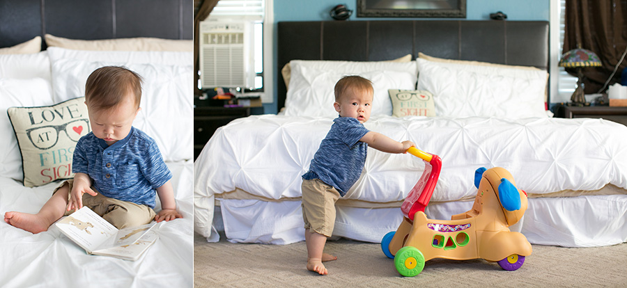 Nolan got his first professional barber haircut at a salon today. I was not there to witness it but from the photos he looked to have been well behaved. Another “milestone” of sorts this week is his accomplishment in using a straw–he can suck up his own water now! He really enjoys it and has the biggest smile on his face after every sip–he’s very proud of himself! Nolan’s confidence in walking is progressing quite well too. He doesn’t hang onto things as much and if he does it’s with one hand to just help with balancing in between steps. He likes to push his own stroller and cruise furniture holding one item in one hand and the other to help balance–like a boss! And of course with all that comes the stage of getting into everything and pressing all electronic buttons. Will open every cabinet, every drawer, grab the highest thing he can reach, throw all the shoes off the rack, toss all the clothes out the drawer and repeatedly turn on/off the receiver, computer and NAS. Man, he’s becoming quite a handful